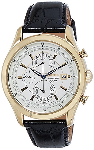 -. Title : Seiko Quartz Chronograph Silver Tone Dial Leather Band Mens Watch SPC168