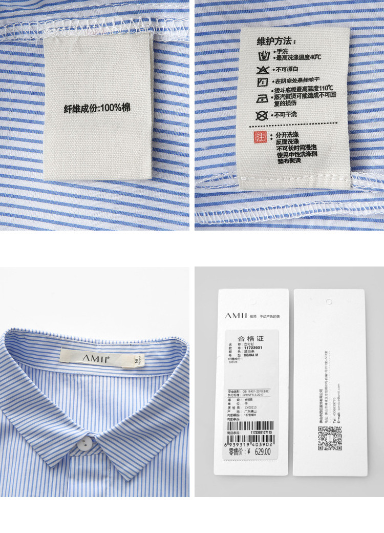 | 洗涤标准: | 不可浸泡悬挂晾干40℃以下手洗110℃以下垫布熨烫不可漂白不可干洗 |