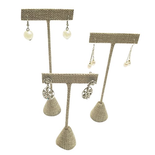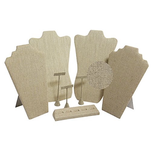 - 8 PCS LINEN COVERED JEWELRY DISPLAY - Set including 4 necklace easel displays, 3 earring T-shape holders with different heights, and a ring stand with 5 slots