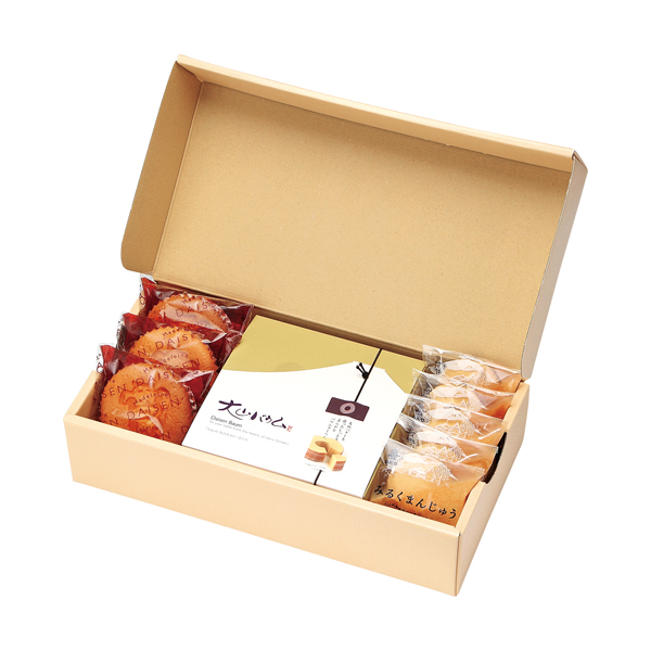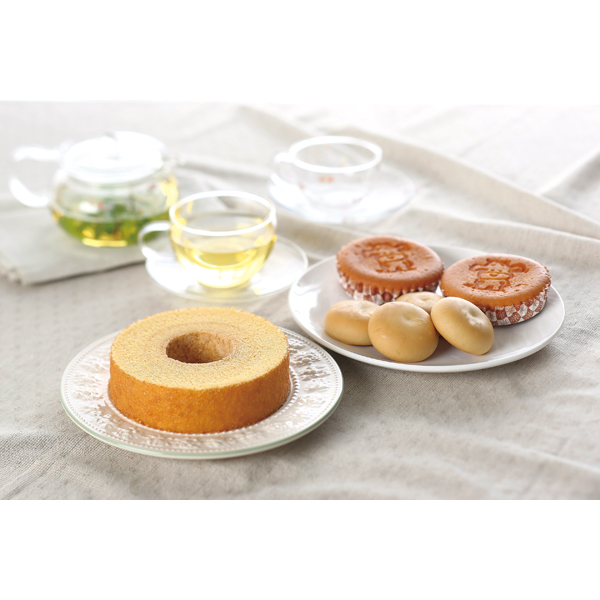 ●自家製の大山バターと自家製ホイップクリームを使用し『ふんわり』感と『しっとり』感にこだわったバウムクーヘン、大山乳業のキャラクター・カウイーの焼印の入ったかわいらしいマドレーヌ、「白バラ牛乳」を生地に使用した、なめらかでしっとりとしたみるくまんじゅうの詰合せです。