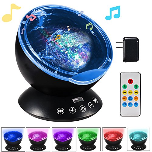 [Upgrade Version Ocean Wave Nightlight]: 12 LED Beads Music Light with remote controller and touch senor keys,freely turn on/off the lamp, change lighting mode, adjust the volume, to set automatically turn off timer.