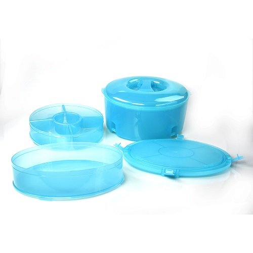 CAKE CARRIER - TRANSPORT/STORE FOOD AND CAKES WITH FOUR COMPARTMENTS FOR SNACKS WITH A DIP COMPARTMENT AND ICE CHAMBER - BY GREAT WAY
