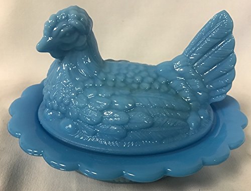 Product Description This 2 Piece Hen on a Wide Rim Base comes in a variety of colors. 4 1/2" in height X 6" in width - Made in the USA by Mosser Glass. Brand New - Unused 0