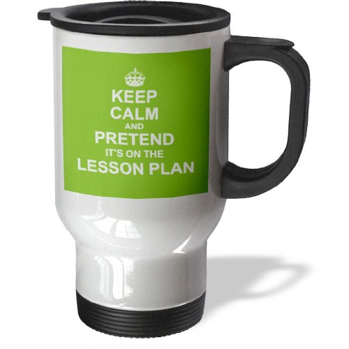3dRose tm_179740_1 Green Keep Calm and Pretend its on the Lesson Plan Funny Teaching Gift, Travel Mug, 14-Ounce, Stainless Steel