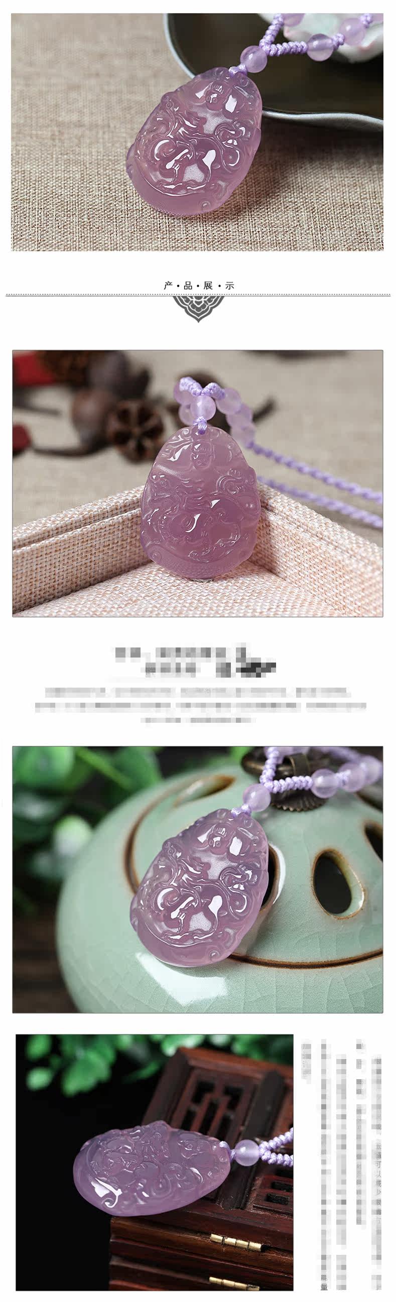 开光天然粉玉髓紫玉髓十二生肖德龙望尊子遥辰禄吊坠