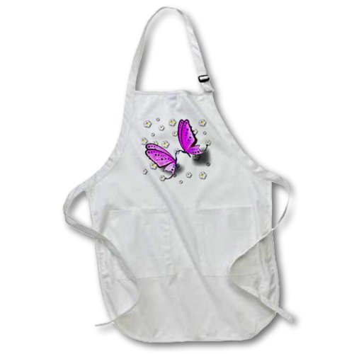 3dRose apr_43259_2 Purple Swallowtail Butterflies and Daisies-Medium Length Apron with Pouch Pockets, 22 by 24-Inch