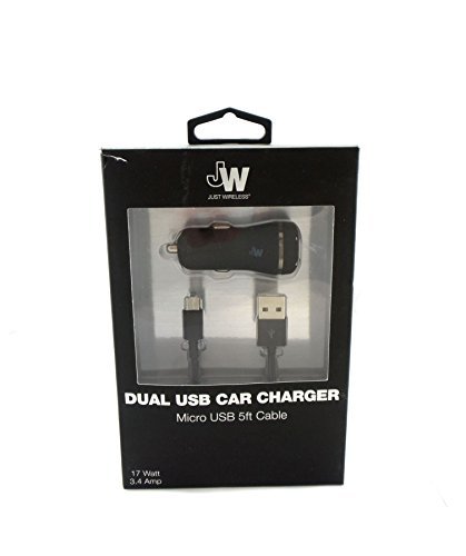 -. Title : Just Wireless Dual USB Car Charger with 5ft Micro USB Cable Black