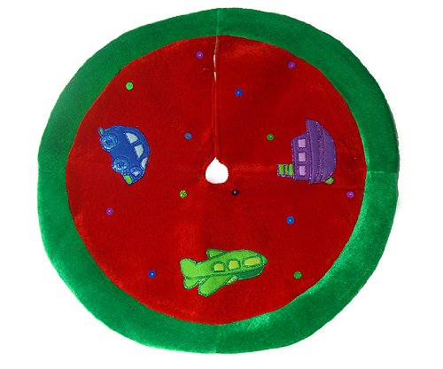 Northlight Cute Red Car Plane and Boat Mini Christmas Tree Skirt, 20"