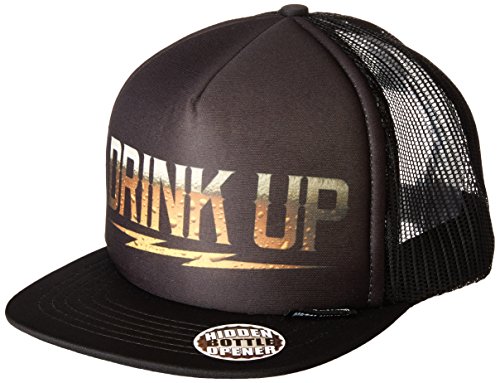 Studio : Metal Mulisha Young Men's Publisher : Metal Mulisha Young Men's Binding : Apparel Product Description The drink up f.U. Trucker hat is a foam front trucker cap with black mesh back panels, sublimated artwork on front with screen printed under visor logo, black snapback, and hidden bottle opener at center back near snapback and woven label at front seam. 0