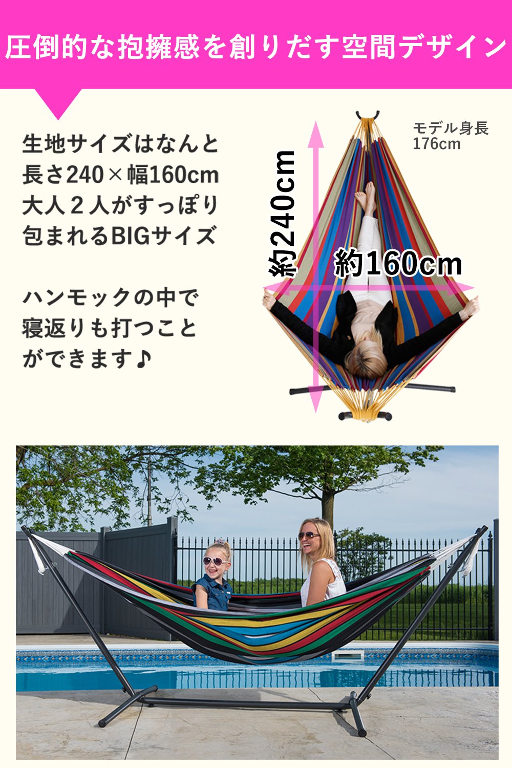 ✅【 圧倒的な空間デザイン 】生地サイズ、長さ240×幅160cmなので大人2人がすっぽり包まれるビッグサイズ。ハンモックの中で寝返りも打つことができます。