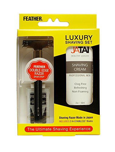 FEATHER Luxury Shaving Set - Popular Double Edge Safety Razor with JATAI Shaving Cream