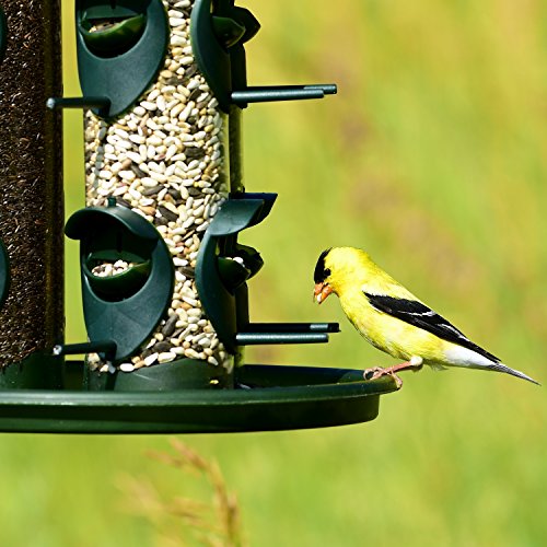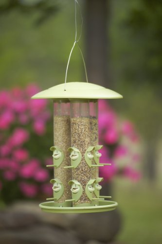 -. Feature : Holds up to 6 lb of seed / Twelve feeding ports / Triple tube can dispense three types of seed at one time