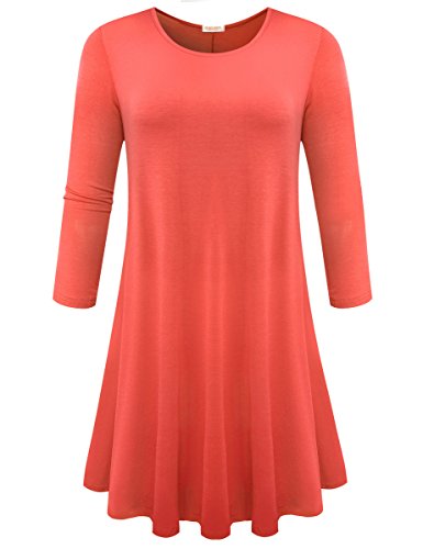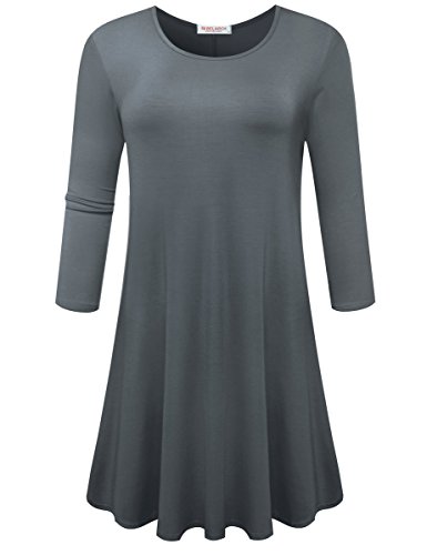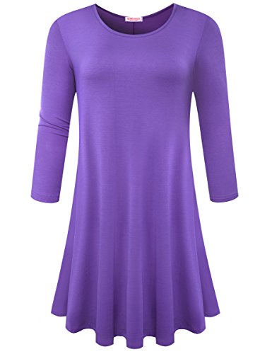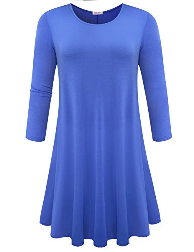 BELAROI Women's Casual Flare Plain Simple 3/4 Sleeve T-shirt Loose Dress