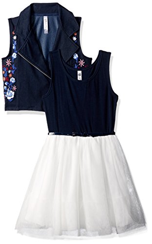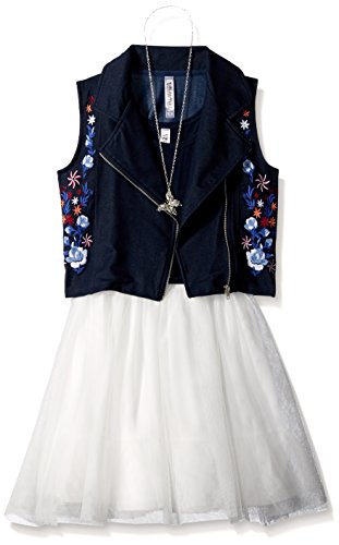 Beautees Big Girls' 2pc Moto Embroidered Jacket/SL Toulle Dress, Denim, 8