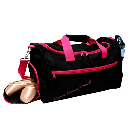 -. Binding : Apparel -. Brand : Horizon Dance -. Department : womens -. Feature : A jet-black dance bag with a discreet screen print message: "Dance, Dance, Dance!" / Unique zippered end pocket extends 10" into the bag to keep shoes or other items separate. / One front zip pocket. One elastic-top end pocket inside. / Dual hand-carry straps with comfort-grip center wrap. Adjustable shoulder strap with metal clips for easy-on, easy-off use. / Medium-large, 16" long x 10" wide x 11" high. Material: microfiber. -. ProductGroup : Apparel -. ProductTypeName : BAG -. Title : Horizon Dance Releve Duffel Bag for Dancers