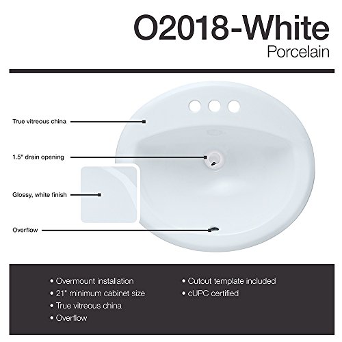 CONTEMPORARY STYLING – With convenient topmount installation, this porcelain beauty flaunts a glistening oval shape, pre-drilled for prompt faucet installation