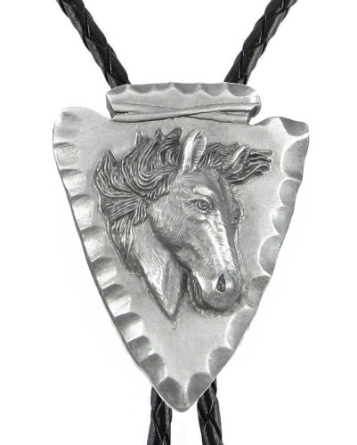 Bolo - Horsehead on Arrowhead - Sculpted Pewter Bolo Tie - Unpainted