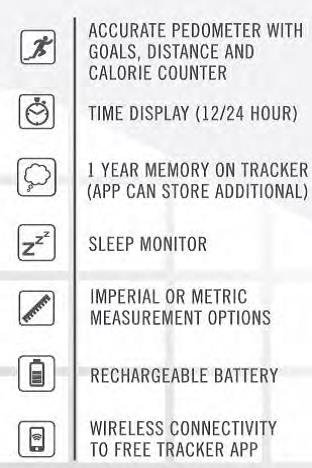 - Feature : Accurate Pedometer with Goals. Tracks steps, distance, calories burned and Quality of Sleep / Sleep Monitor. Time Display (12/24 Hour). / Imperial or metric Measurement Options / 1 Year Memory On Tracker (APP Can Store Additional) > Rechargeable Battery > Wireless Connectivity to Free Tracker APP / Free App For Smartphones, Compatible with iOS and Android 4.3+
