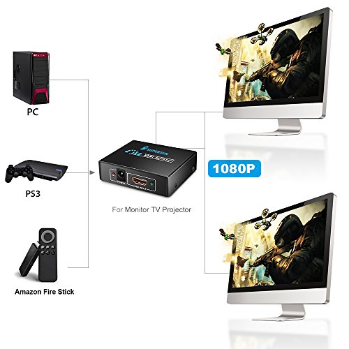 HDMI Splitter, One Input To Two Outputs HDMI Amplifier 1X2 Hdmi Splitter 1 in 2 out Hdmi Splitter 4k 3D 1080p for Cable Box Satellite TV Direct TV HDTV Dual Monitor (1 Input 2 Output)