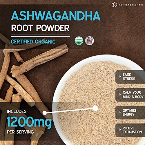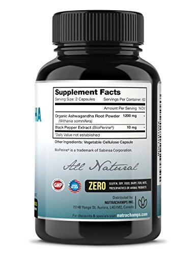 -. Feature : ★ THE LEADING BLEND - Looking for the most potent Ashwagandha available? Well we've just brought you exactly that - 1200 mg of Organic Ashwagandha root powder per serving. Our premium formula includes patented BioPerine® black pepper extract for maximum absorption and benefits, with zero additional ingredients. Great for unwinding after a long day at work, or helping eliminate daily stresses. NutraChamps Ashwagandha is like happiness and a deep breath in a bottle. / ★ EASE YOUR STRESS & MOOD - NutraChamps Ashwagandha helps you stay in balance by keeping you calm, focused, positive, and energized. If you are feeling exhausted, drained, and burnt out, then this is the herb that you need. So what are you waiting for? Address your stress today and experience the remarkable benefits of Ashwaganda yourself! / ★ BEST VALUE ON AMAZON - No other brand comes even close to the quality and value that we offer with our organically grown Ashwagandha with BioPerine blend - 120 vegetarian capsules - 600mg packed into each vegan cap! If you're looking for the premium ashwagandha supplement, there is truly nothing out there that compares. / ★ CERTIFIED ORGANIC & VEGAN - Our professional grade ashwagandha is a 100% organic root powder and is non-GMO & vegan friendly - including the capsule! As opposed to ashwagandha extract, this supplement delivers you the purest form of the herb in the traditional Ayurvedic way it has been used for thousands of years - without any harsh extraction processes.