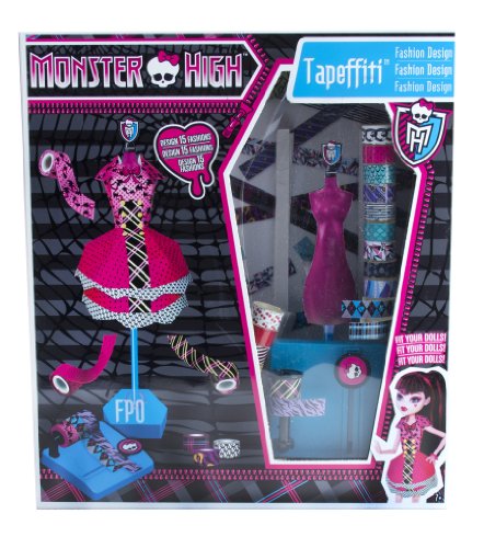 Feel like a real life fashion designer with the Monster High Tapeffiti Fashion Design Dress Kit! Comes with 15 different fashion designs to choose from. You just tape, cut, and embellish! Includes dress form, tape dispenser, 24 tapes, 15 pattern sheets, 40 gems, clear tape, burnisher, and sticker sheet.