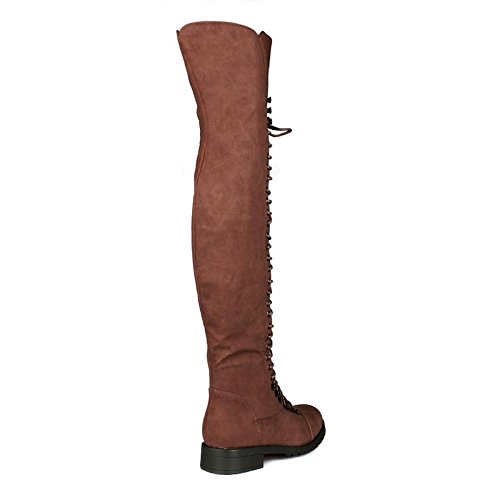 Product Description Ride in style every season with these laced up over the knee high riding boots with a full in-side the leg zipper closure. Both comfy and trendy, featuring a rich leatherette PU material upper, PU lined insole and rubber outsole 0