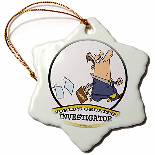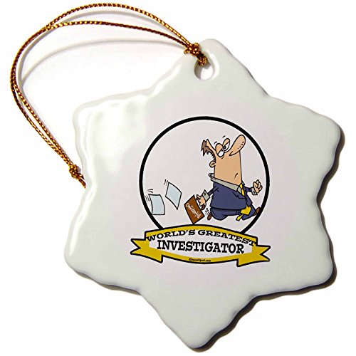 3dRose orn_103284_1 Funny Worlds Greatest Investigator Cartoon-Snowflake Ornament, Porcelain, 3-Inch