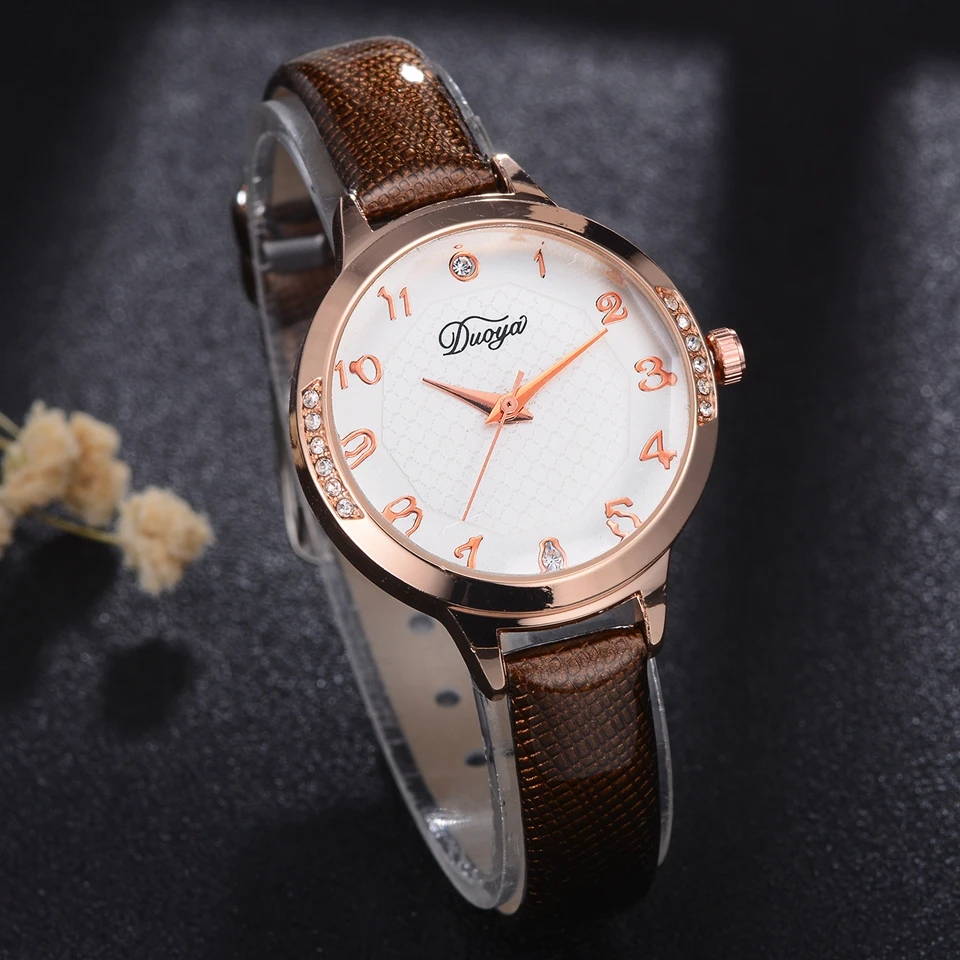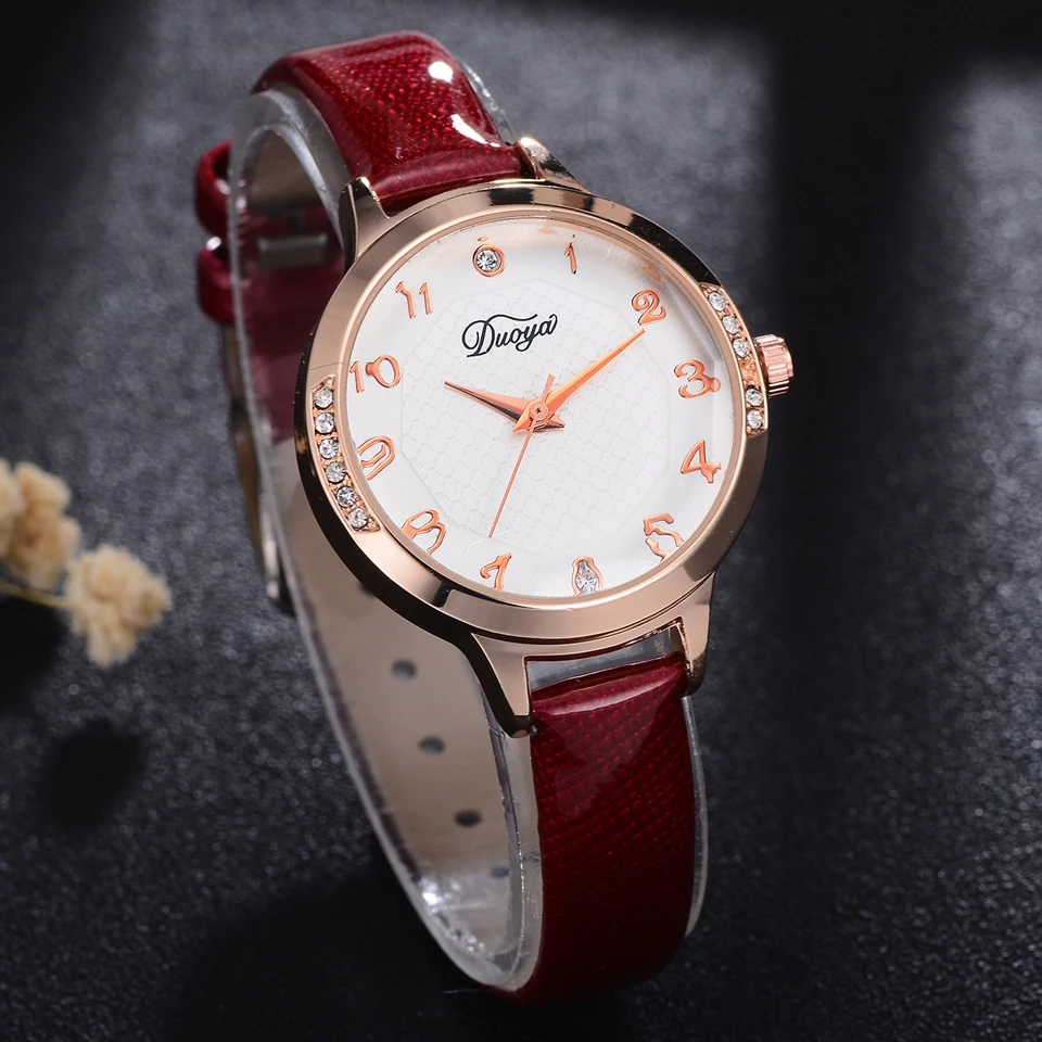 duoya腕時計女性ファッショントップブランドレザーストラップ石英の腕時計レディースクリエイティブヴィンテージクラシックカジュアルギフト腕時計DY154