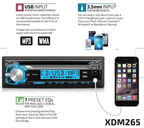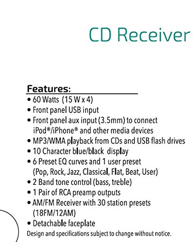 - CD, USB, MP3 & WMA PLAYBACK – you now have a variety of options to listen to your favorite music; either by the CD Player, USB port which also charges your device, MP3 player with ID3 tags and AM/FM radio stations with 7 Preset EQ curves