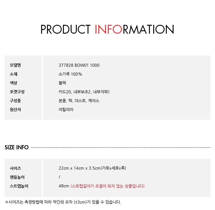 구성품본품, 택, 더스트, 케이스