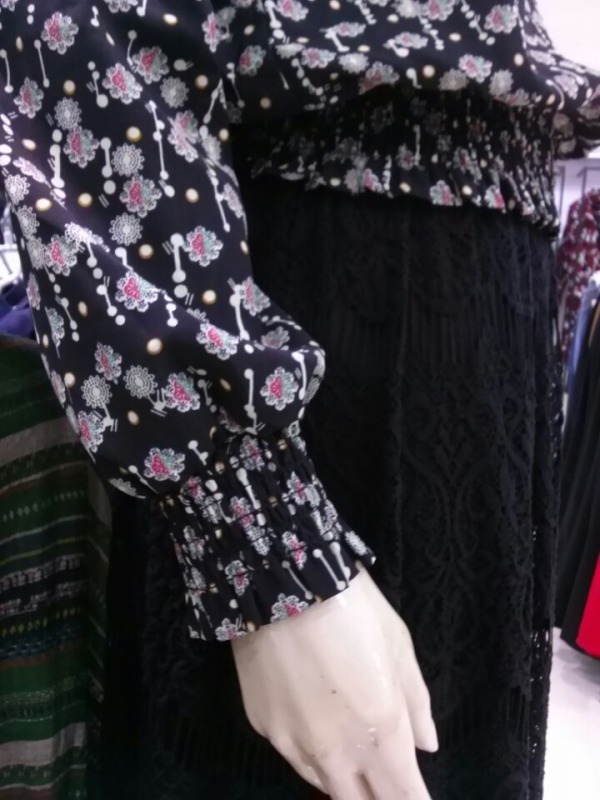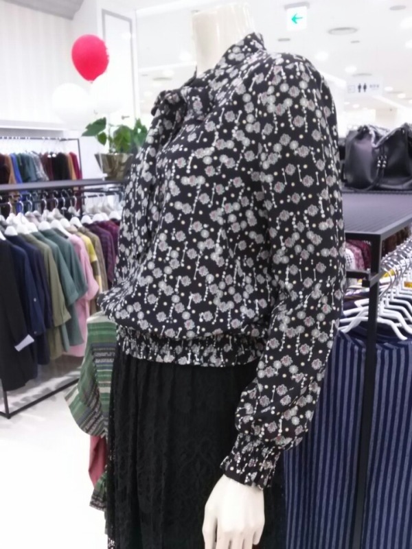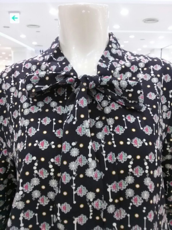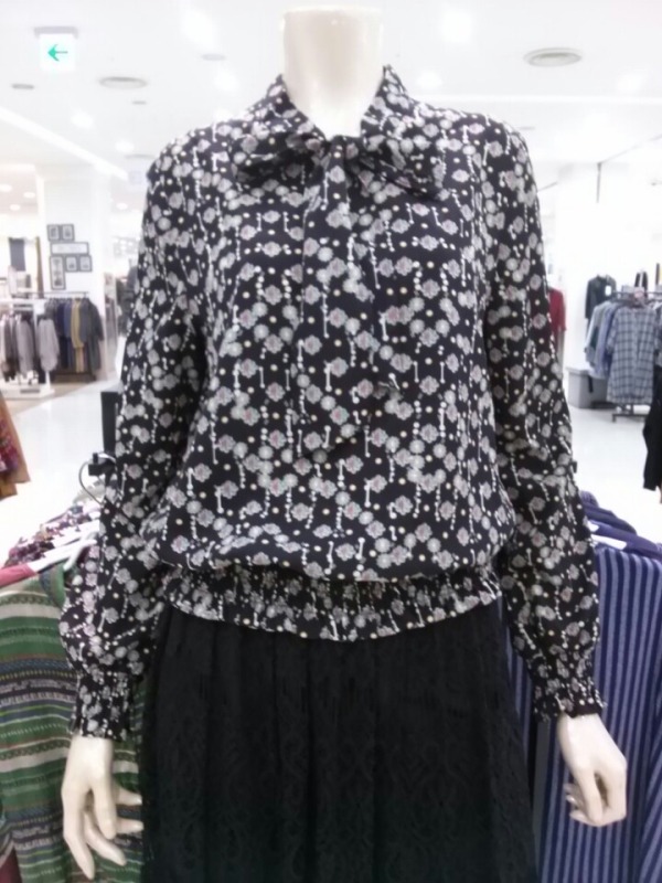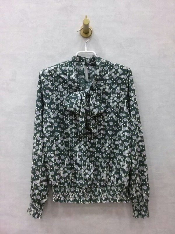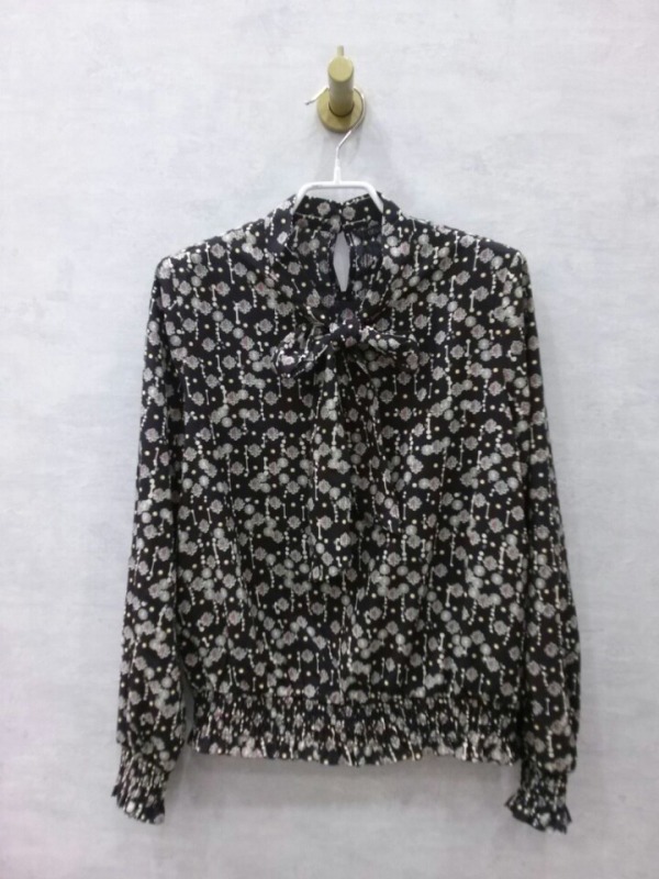 소매와 허리밑단 밴딩이 더해진 리본넥 블라우스