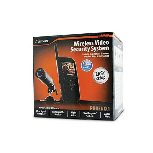-. Binding : Electronics -. Brand : Defender -. Color : black -. EAN : 0871363006882 -. Feature : Audio Support a built-in microphone that lets you hear everything thats happening in your monitoring location / Durable Camera for Indoor or Outdoor Use the discreet camera is built with durable aluminum / Completely Wire Free Surveillance both the monitor and camera can run on battery power, with no need for wires / Avoid Interference & Interception with Clear Signal Technology this system transmits over a 900mHz frequency / Continuous Security Day or Night the camera comes equipped with infrared night vision / Avoid Interference & Interception with Clear Signal Technology - This system transmits over a 900mHz frequency / Completely Wire Free Surveillance - Both the monitor and camera can run on battery power, with no need for wires / Continuous Security Day or Night! - The camera comes equipped with infrared night vision / Durable Camera for Indoor or Outdoor Use - The discreet camera is built with durable aluminum / Audio Support - A built-in microphone that lets you hear everything thats happening in your monitoring location -. Label : SVAT Electronics -. Manufacturer : SVAT Electronics -. Model : PHOENIX1 -. MPN : PHOENIX1 -. PackageQuantity : 1 -. PartNumber : PHOENIX1 -. ProductGroup : Photography -. ProductTypeName : SURVEILANCE_SYSTEMS -. Publisher : SVAT Electronics -. Studio : SVAT Electronics -. Title : Defender PHOENIX1 Wireless Video Security System with Portable LCD Monitor and Indoor/Outdoor Night Vision Surveillance Camera (Black) -. UPC : 871363006882 -. Warranty : 1 Year