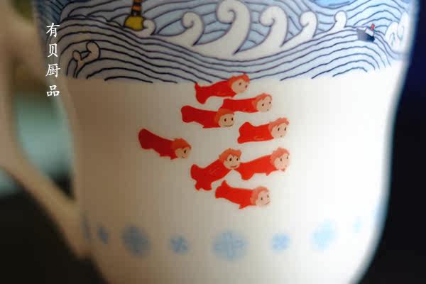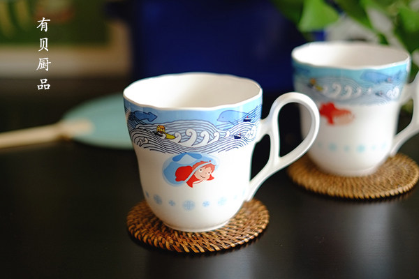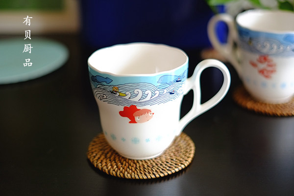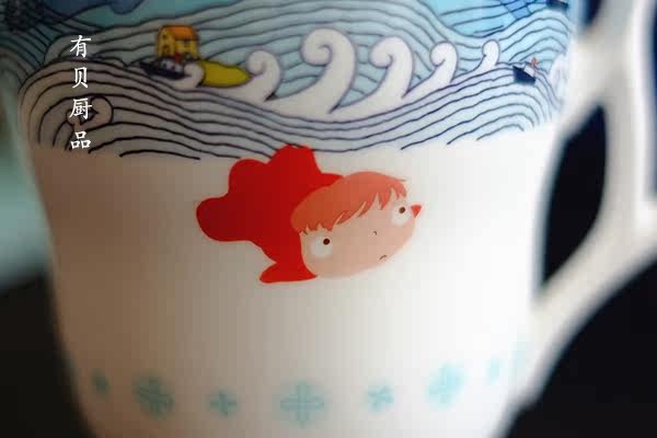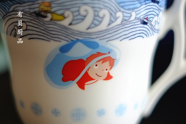两款颜色差别很小,浅蓝正面是波妞和水滴,浅绿正面只有波妞哦~