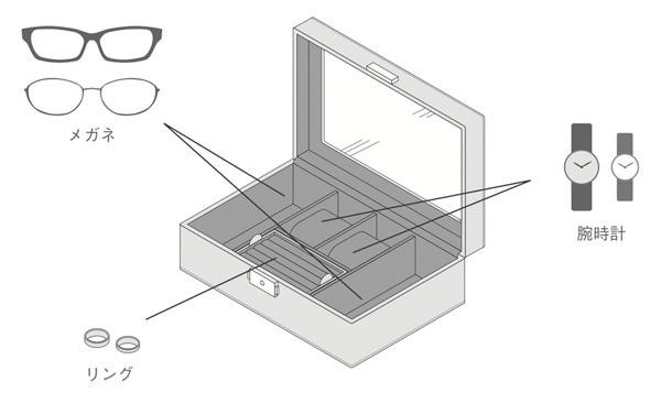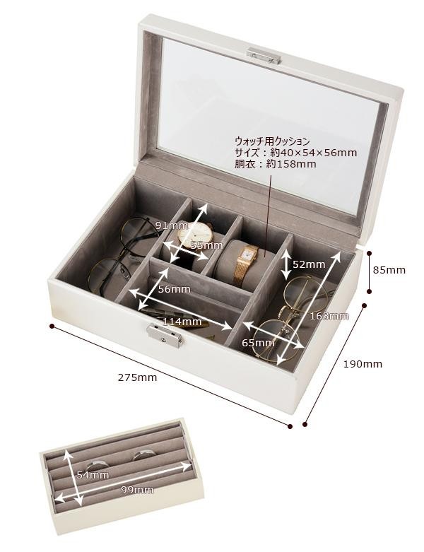 | ユニセックスなデザインのアクセサリーケース。 |