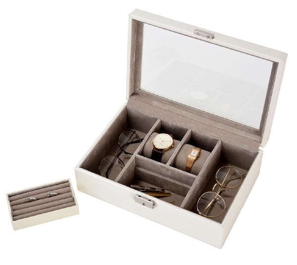 ほのかに甘さ漂うモノトーンでまとめたユニセックスなデザインのアクセサリーケースは、夫婦や恋人などでシェアして使ってもおすすめです。1人でも2人でも使う楽しみが広がるアイテムです。 |