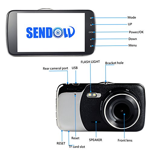 SENDOW On Dash Car Camera Dual Lens with 1080P FULL HD IPS Screen In Visor Backup DashBoard Camcorder G Sensor Motion Detection Parking Mode Loop Recording Night Vision for Vehicle SUV Truck MPV