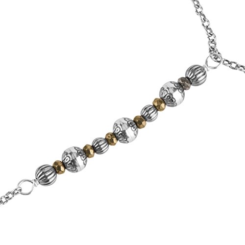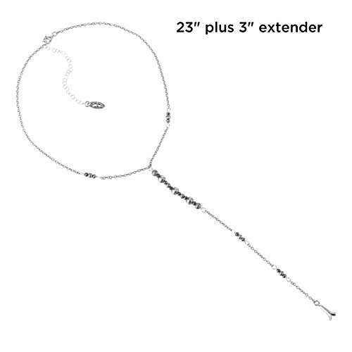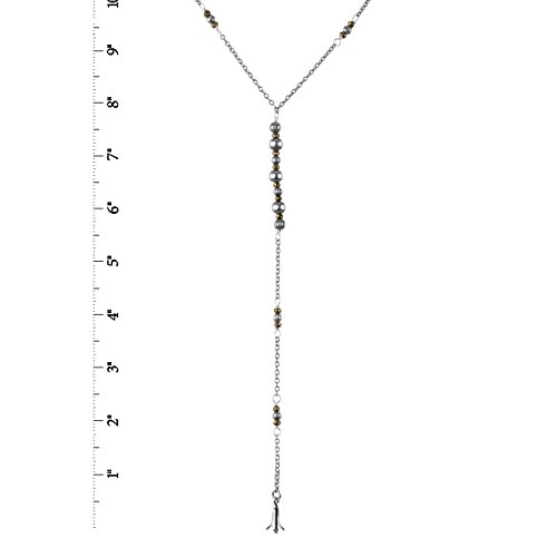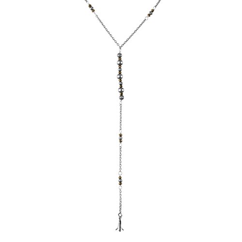 American West brings you this unique and trendy sterling silver and pyrite Y necklace. Sterling silver chain links are accented by sterling silver beads and faceted pyrite gemstones. A squash blossom charm finishes the bottom of the necklace for a true boho-chic look and feel.