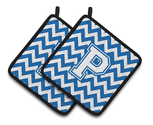 Caroline's Treasures Letter P Chevron Blue & White Pair of Pot Holders CJ1045-PPTHD, 7.5HX7.5W, Multicolor