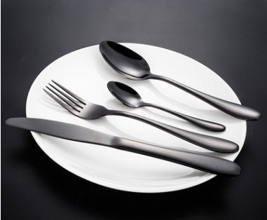 Black Flatware Set: 1 piece Dinner Knife, 1 piece Dinner Spoon ,1 piece Dinner Fork,, 1 piece Salad Spoon(A total of four sets of)