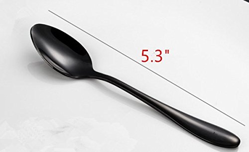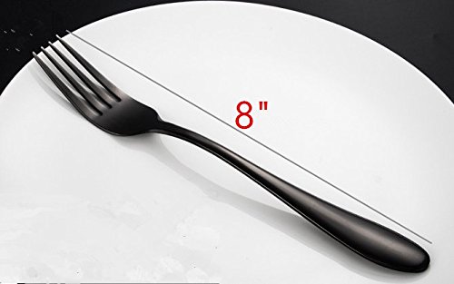 Black surface coating: Unique black colored flatware set looks fashionable and charming elegant, elongated handle design makes it very comfortable to hold for both adults and children.