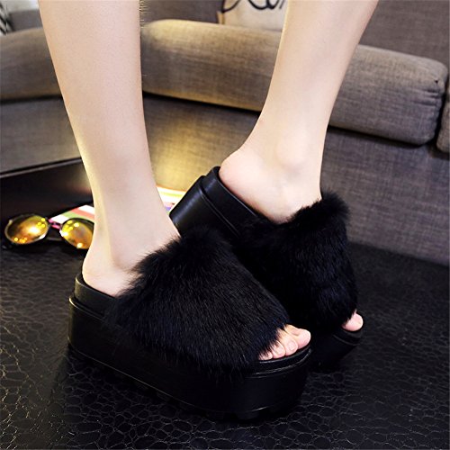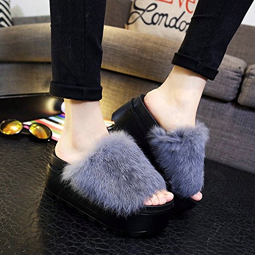 -. Feature : メイン素材: レザー  靴底:ゴム  ファー部分:ラビット / ヒール高さは約7cm、底には滑りにくく、履き心地の違う秋冬のオシャレアイテム / 柔らかいラビットファー、ファ-のボリュ-ムがすごく、フワフワ感じで可愛い / 洋服やジーンズなどの普段着だけでなく、和装や浴衣にも使える和洋折衷デザインとして高く評価されています。 / 軽くかつ厚底も安定感があるので、長時間履いても疲れにくく、足が痛くならない♪