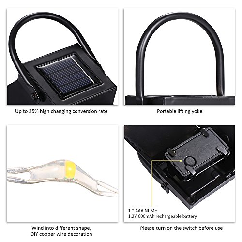 -. Title : Solar Lantern Lights, hine Outdoor Hanging Lamp, Copper Wire Fairy String Lights, IP44 Waterproof, Built-in 600 mAh Capacity Rechargeable Battery, For Patio Garden Courtyard Pathway, Warm White