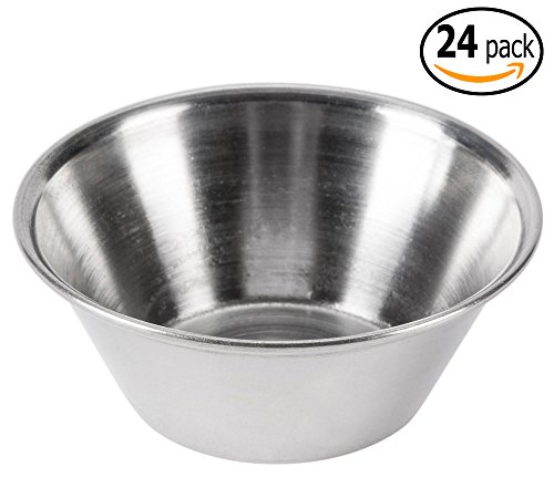 Individual Condiment Sauce Cups and Dish Scraper, Stainless Steel - 1.5 Ounce (24)