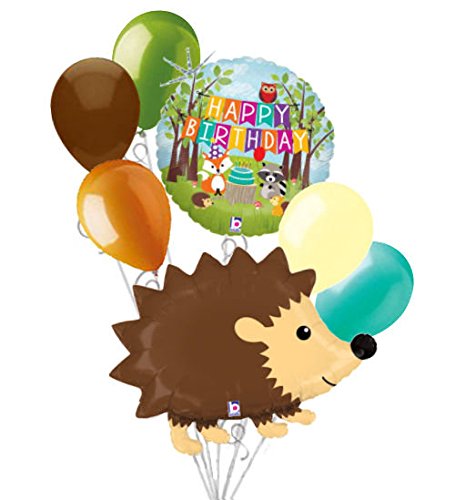 -. Feature : 1 - 30" Woodland Hedgehog Shape Balloon / 1 - 18" "Happy Birthday" Woodland Creatures Round Balloon / 5 - 12" Mixed Latex Balloons (Lime Green, Brown, Orange, Ivory, Aqua) / Packaged & Shipped together / Helium and Ribbons are not included