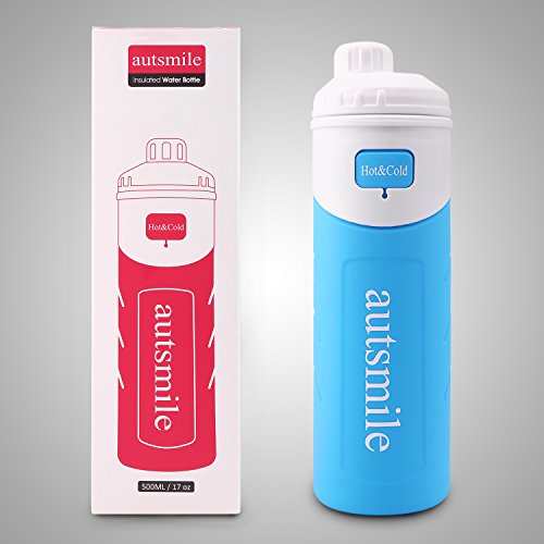 Autsmile Silicone Insulated Water Bottle Thermos | BPA Free & LFGB Silicone, Comfy Spout & Leakproof Lid | For Travel, Sports, Camping, Hunting, Gym, Outdoors, Office Work, Biking & More (17oz)
