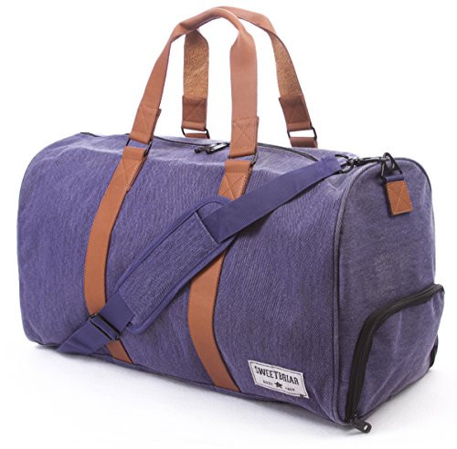 -. Brand : Sweetbriar -. Department : unisex-adult -. Feature : Top-Handle Travel Duffle Bag features a side access shoe compartment, separating shoes or other items from the main bag. / Includes a durable interior lining with multi-function zipper pocket for storage of various small items. Also includes a removeable padded shoulder strap. / Reinforced metal connections (not plastic) are built to withstand years of use. / Style: Carry On Vintage Suitcase Weekend Bag Traveling Travelling Holdall Overnight Trip Accessories Carryon Retro Backpack Baggage Case. Polyester & Faux Leather. / Dimensions: Large 21" x 11" x 12". Lightweight 1.9 lbs. -. ProductGroup : Apparel -. ProductTypeName : LAGE -. Title : Sweetbriar Classic Duffle Bag - Weekender Duffel with Shoe Compartment