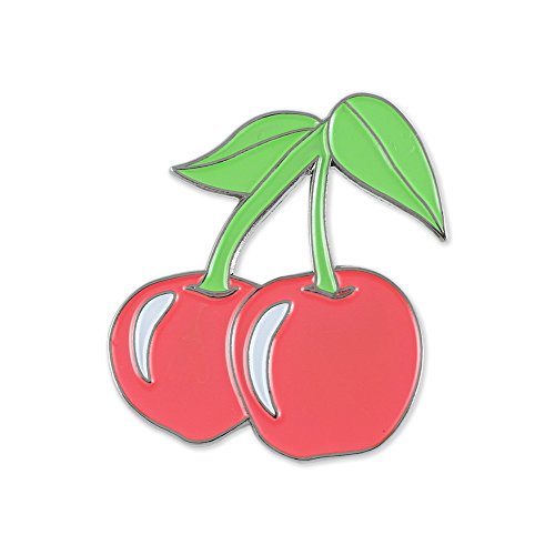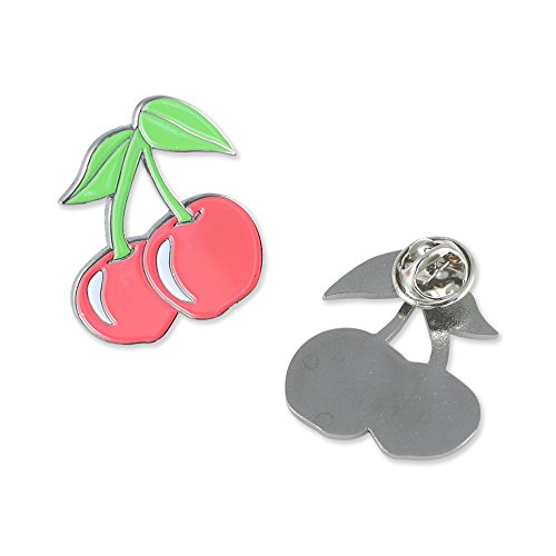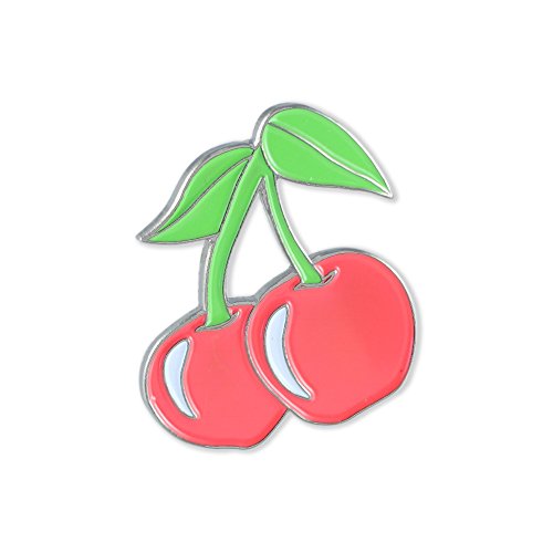 Iconic Stemmed Red Cherries! Add a little sweetness to your accessories collection, this pin is a fun and bold design you'll love to showcase. Own this masterfully crafted and vibrant black nickel plated enamel diestruck lapel pin.