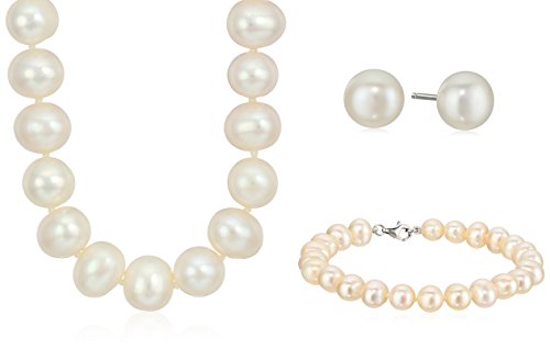 Sterling Silver Freshwater Cultured Pearl set featuring matching necklace, bracelet, & earrings