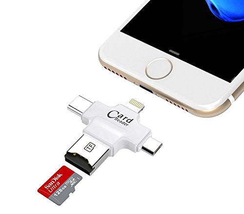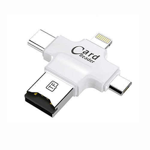 4 in 1 Micro SD Card Reader: This Card Reader is great compatibility for all your devices. It has four interfaces: lighting connector for iOS devices; Micro USB connector for Android devices (with OTG); USB connecto for computers/Macs; Type-C connector is for Type-C devices.
