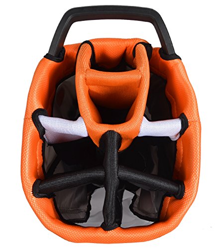 - Feature : Custom 8-way top with designated, lined putter and driver wells and integrated soft-touch grab handle / 6-pocket configuration / Fully padded, adjustable harness shoulder strap system
